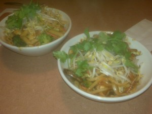 We stopped here for dinner last night not really knowing what to expect. I assumed it would be like other noodle franchises around the country, but I was surprised. I had the Udon and Chad the Spicy Peanut. At first I thought I was so hungry that this wouldn’t be enough food… but it was more than enough. It was very good. Hot and spicy. We both added chicken and liked the Black Currant tea. Great place to bring the kids for mac and cheese or pasta with marinara & meatballs. I also liked the local mom & pop vibe. I always know a place is good if they have siracha on the tables.