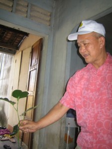 Interestingly enough in 2007 I went to Vietnam with my father. We were visiting some relatives in his hometown just north of Saigon. We found wild batel leaves growing in the yard. In the picture below my dad surprised me with a batel plant he had just pulled out of his cousins back yard in which he kept insisting it was “good, good.”