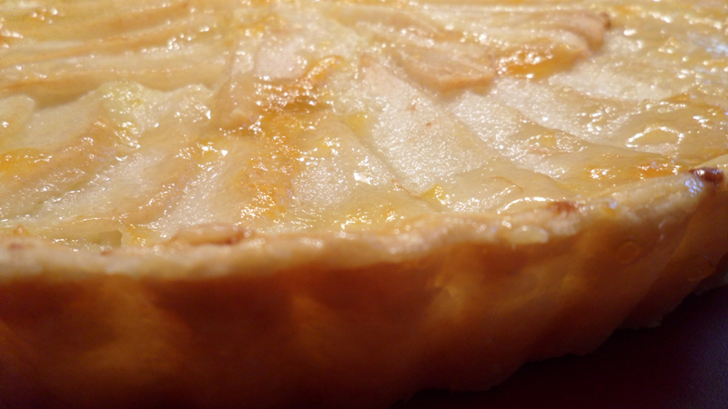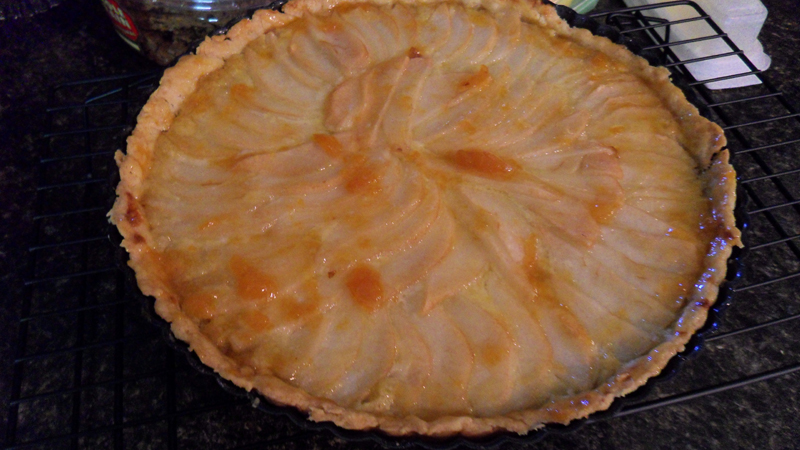 This line was from a recent episode of Mad Men in which I found it hilarious. Don’s elderly male neighbor was waiting for his wife to return from shopping. As she was coming down the hall all he had to say was “Did you get pears?” I found it hilarious. Now we cannot stop saying it. As it turns out, pears were in season so be bought a bunch of them. What to do… what to do with all of those pears. They were delicious on their own but they can turn overnight. So Almond Pear Tart was born.