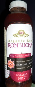 On this visit I came across GT’s Kombucha in the cooler. It was $3.99 for one bottle. Posted on the cooler was a sign stating a limit of 6 per person. Apparently it is very popular and they cannot keep it in stock. There were many different flavors to choose from but I chose the Botanic #7. On the bottle it said, Cleanse your system and calm your nerves with hibiscus, orange peel chamomile and fresh-pressed ginger.” I have to admit when I picked up the bottle I was not sure if I could drink it. I am not a big fan of things floating in my drinks. However, I knew this was part of the deal before I purchased it. Kombucha is fermented and has a lot of yeasty bits floating in it (this is the good stuff that will help your system). You can see some of it in the bottom of the bottle in the picture.