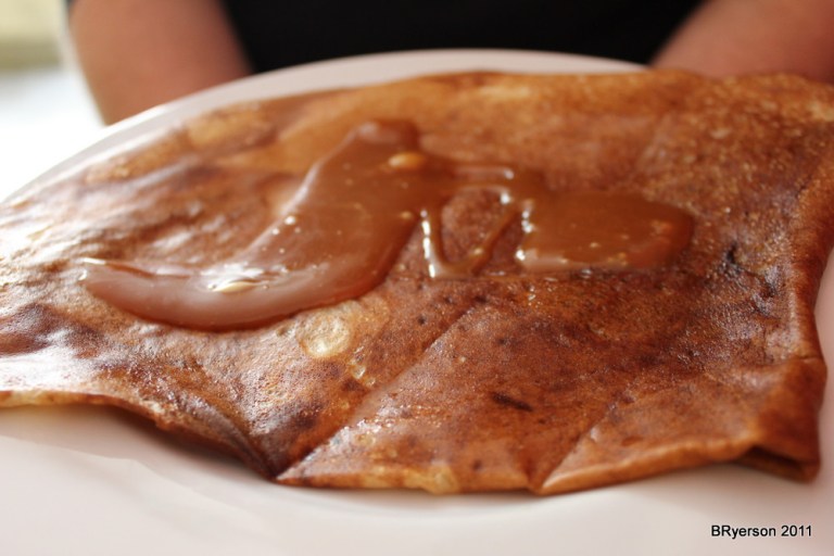 Upon arrival the salted caramel was spooned into the center of the crispy crêpe (gallette?, delicous?). It was warm, creamy, sugary, salty, and buttery nummy-ness. I remember savoring every bite. It was truly salted caramel bliss for the senses.