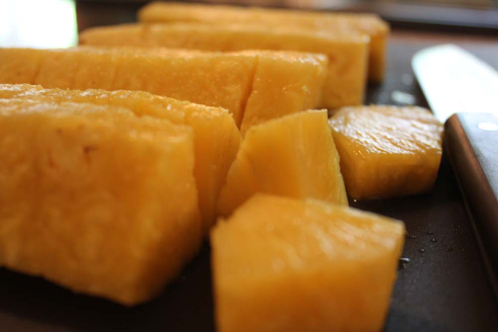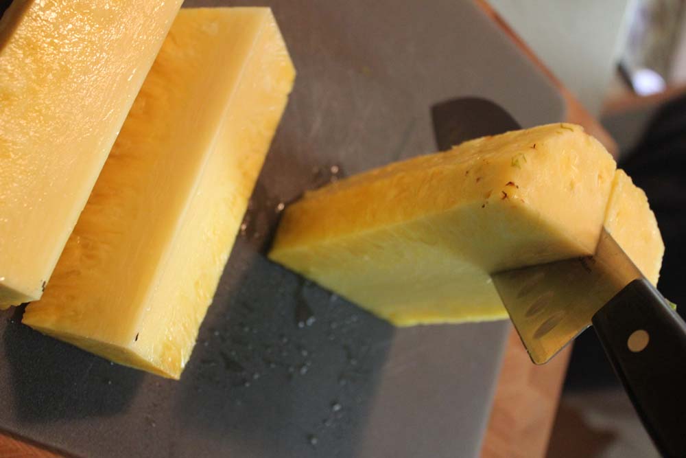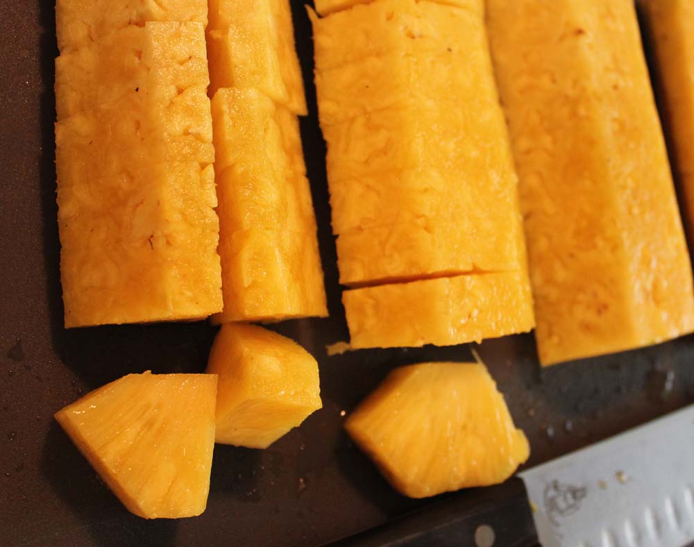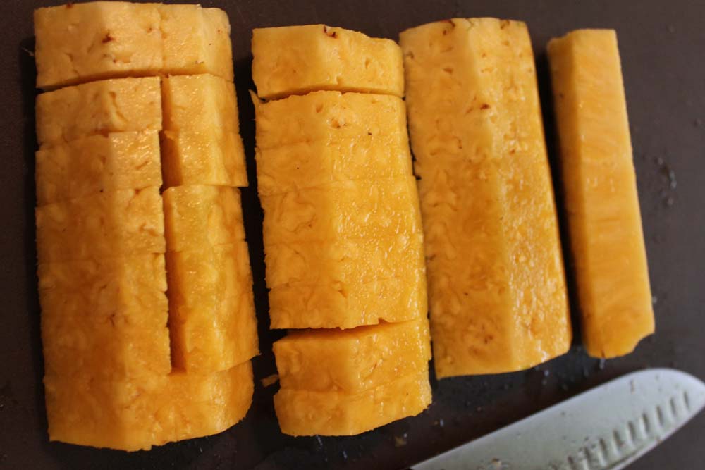 It surprises me how many people do not know how to select and cut a pineapple. I have heard many people say that they love pineapple but they don’t buy it because they don’t know how to cut it up properly.