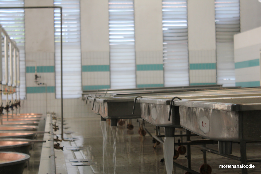 We found the milk which was delivered fresh in the early hours of the morning already poured from these tables into the bell-shaped copper kettles.