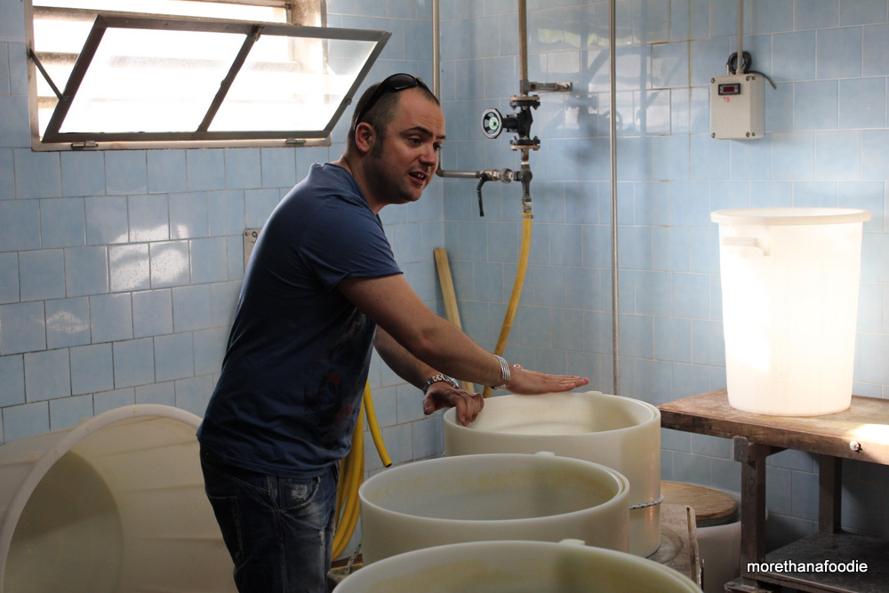 The Casaro heats the curd. As the foreman of the operation or Casaro “cheese maker” this man has a very important job to ensure the temperature is correct to form the correct curd.