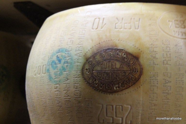 After 12 months the cheese is then reviewed by the Consortium. The wheel of cheese is not Parmigiano-Reggiano until it is evaluated by this governing body. In order to become Parmigiano-Reggiano the Consortium must designate the cheese as meeting the requirements. It’s then fire-branded with the Designation of Origin Protected or Denominazione D’Origine Protetta (DOP). (Since our tour I have seen products listed as Protected Designation of Origin (POD). I am not sure if this designation was updated or if they are used hand-in-hand but I will stick with DOP). Italians are very proud of their products, the authenticity, their Consortium, and of course the DOP designation. Any product certified as DOP means it is the real deal. If you want the real thing with your Parmigiano-Reggiano or your Aceto Balsamico di Modena (Balsamic Vinegar) you must look for the DOP. Otherwise it is just a copy. If you must buy, just ensure don’t pay too much for it.