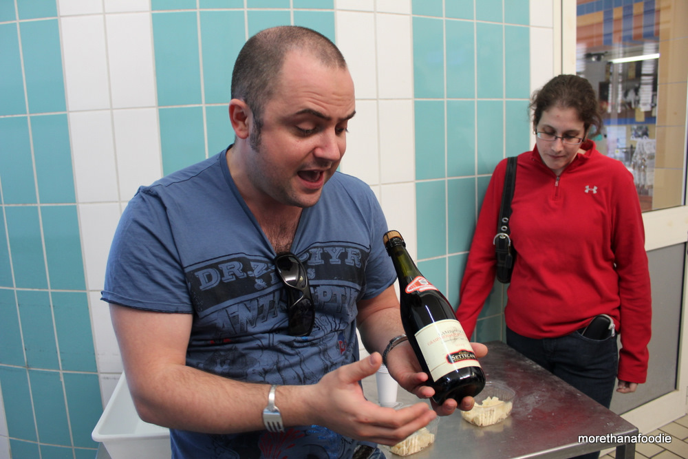What goes with our first taste of their cheese? Lambrusco, of course!