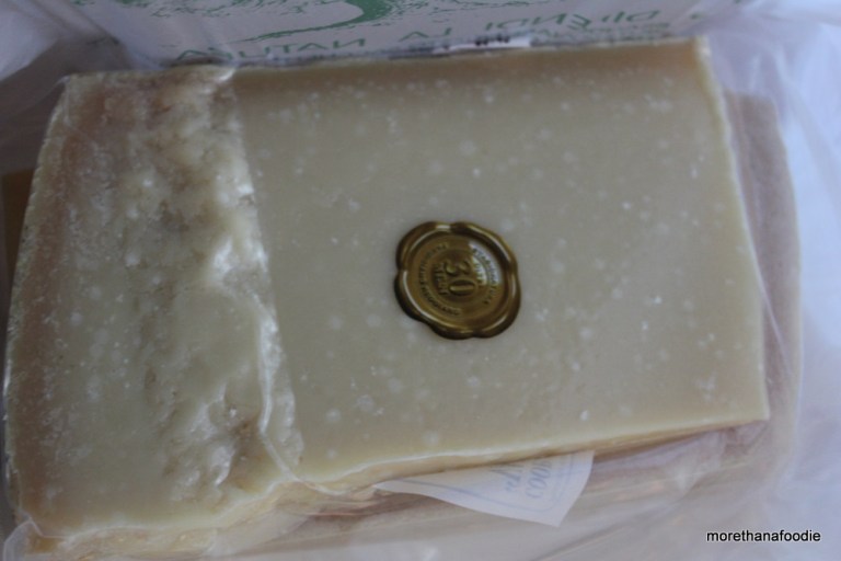 Luckily we can bring Parmigiano-Reggiano home if it is vacuum sealed. We bought 3 kilos (6.6 pounds) to bring home. We paid about $25 Euro ($35 US). When I got home Hy-Vee sells it for $15.99 a pound! The seal tells you what type of cheese you are buying. Red Seal – Aged 18 months, Silver Seal – Aged 22 months, and Gold Seal – Aged Over 30 months. We purchased a few of each.