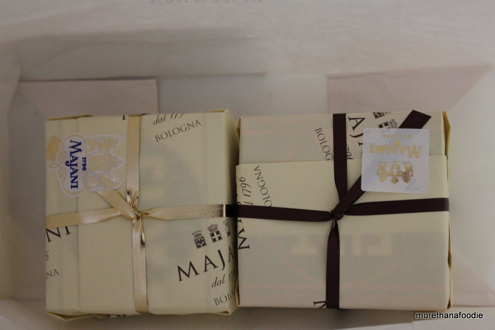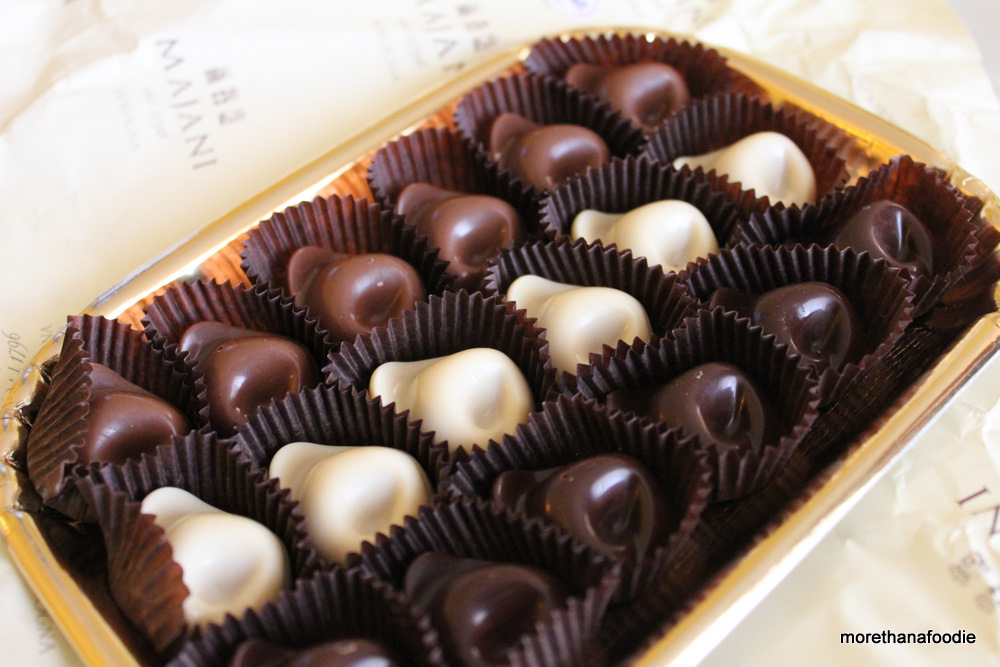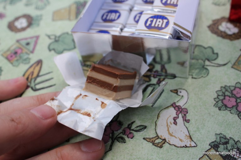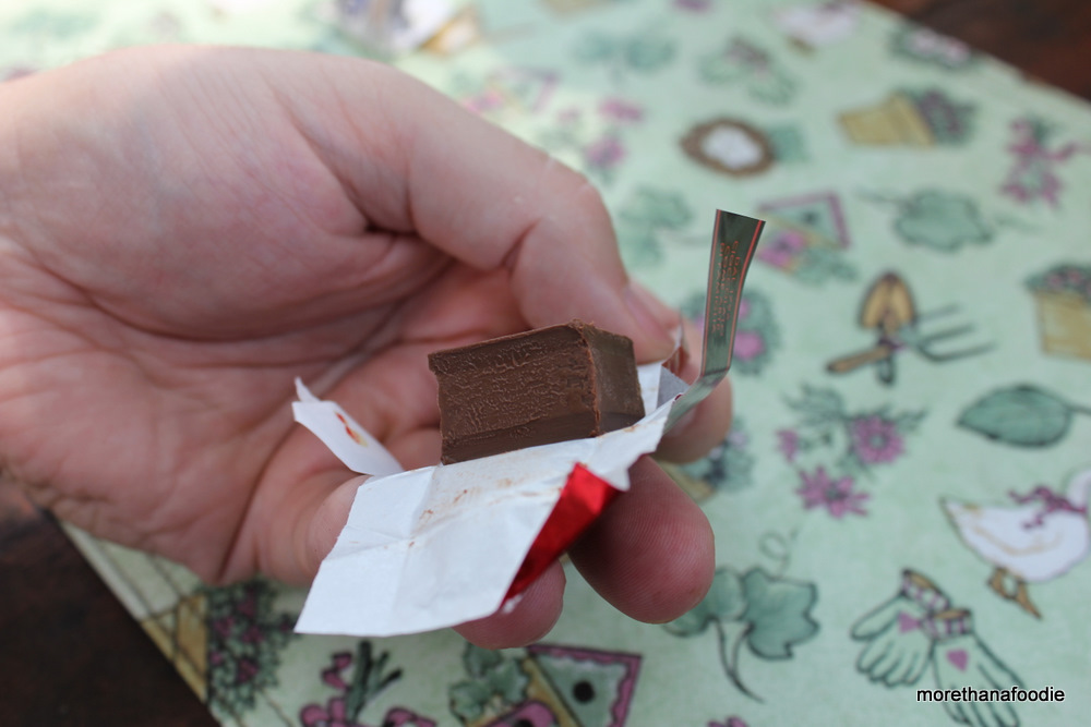 Layers of sweet creamy chocolate. The milk was made with almond and the dark was with hazelnuts. They were amazing little packages of wonderful.