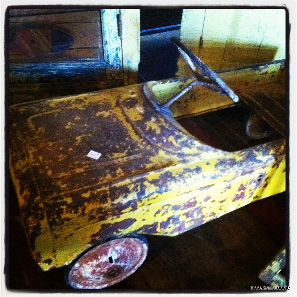 This mini car reminded me of being at my aunt and uncle’s house in Rogers, ND. As a kid I use to ride around in this blue car that they kept in the rafters of the garage. It had little pedals and I thought it was SO cool! Hopefully they still have it because they wanted $175.00 for this one. Ah, memories.