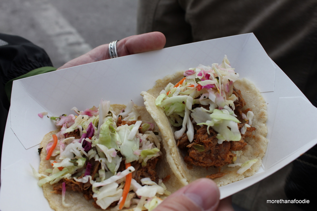 Amy went with the Vegan Chorizo and Tofu Scramble Tacos. These guys have become very popular at the market. This was the first time I have actually tried the tacos. The flavors were good, but most of the tacos were kinda cold. It was freezing outside so I do blame the set up and the weather. Not the tacos. I will have to give them a try again next year.