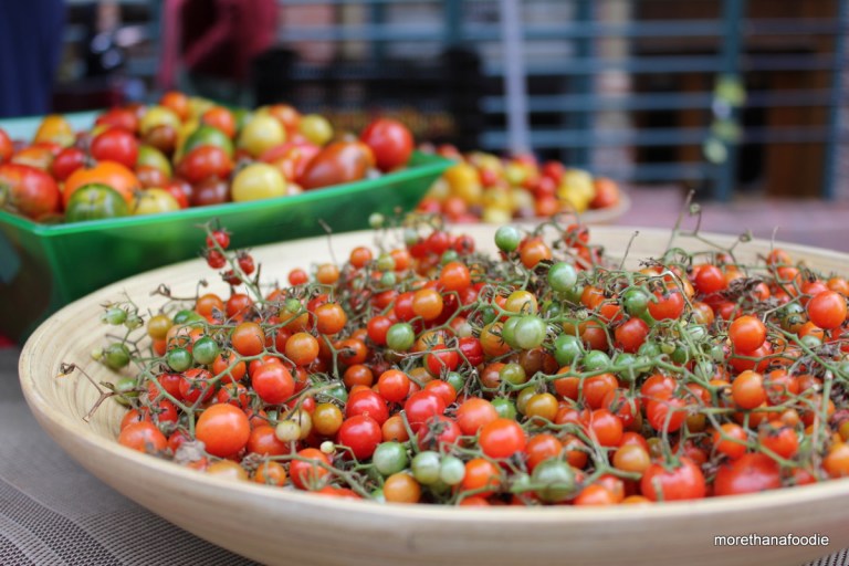 Currant Tomatoes. They are so cute! The tomatoes in the background are heirloom cherry tomatoes to give you an idea of the size.