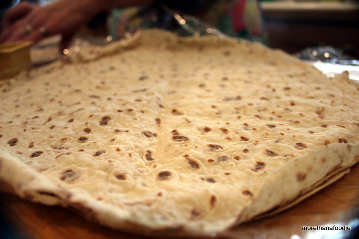 When we arrived, Corky was busy preparing the lefse. This particular brand was some she purchased from Carl’s Lefse from Hawley, MN. Another favorite in the area is Freddy’s Lefse out of West Fargo, ND.