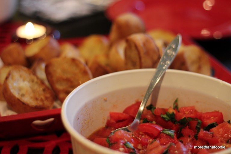 The tomatoes were made into a mouthwatering bruschetta served with crostini.