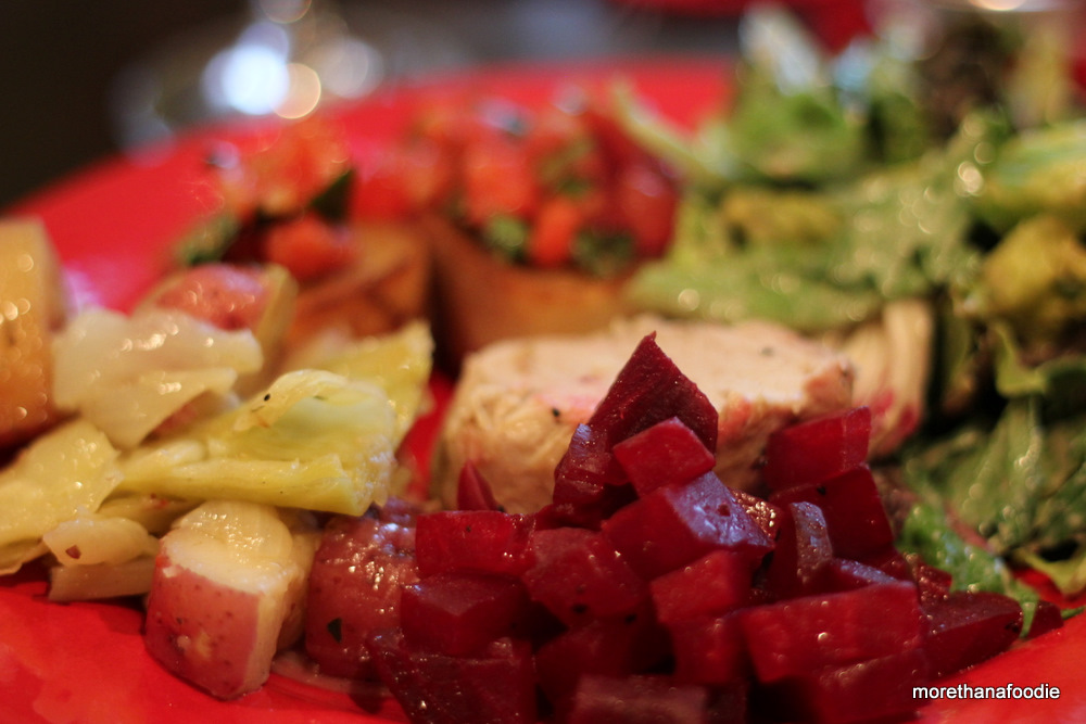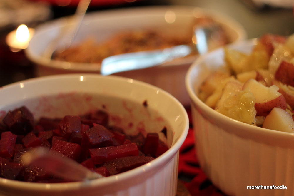 Melissa and Rachel participate in a community garden share. As a result, we had local fresh beets, cabbage, potatoes, and tomatoes at our disposal. The beets, potatoes, and cabbage were roasted.