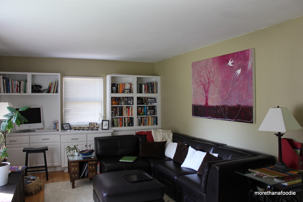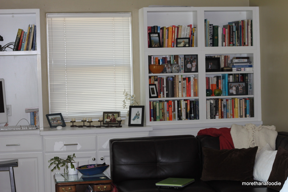 The girls gained a ton of storage space in this room with the addition of some cabinets and bookshelves.