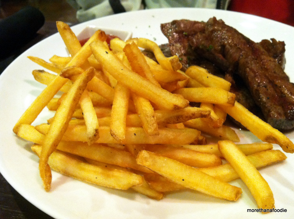 We arrived at dinner. We decided on two items. The first being the Steak Frites from the dinner menu, which is available after 4pm. The price was $14 and included a side of soup or salad. The steak was cooked precisely to a medium rare and the fries were hot, crispy, and seasoned. We are in Iowa so there was a side of ketchup served with the entree, but I would have preferred garlic butter or a side of mayonnaise as an accompaniment for this dish.