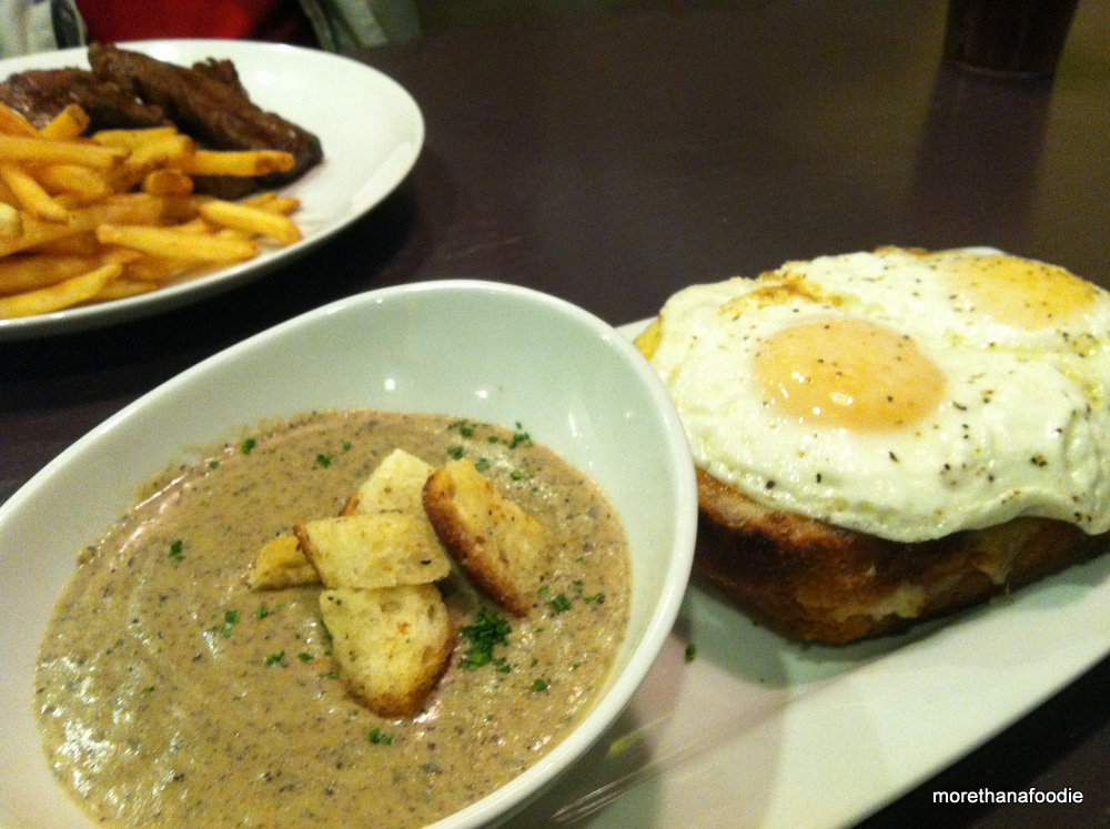 Our second choice was a Croque Madame with Mushroom soup as a side for $9.