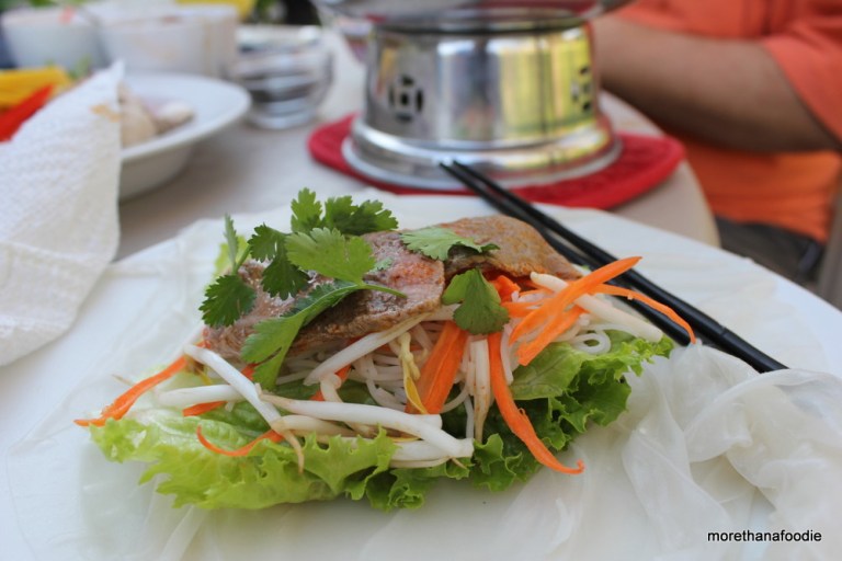 Another way to enjoy is to eat some of the cooked meat with the raw veggies wrapped up in some rice paper.