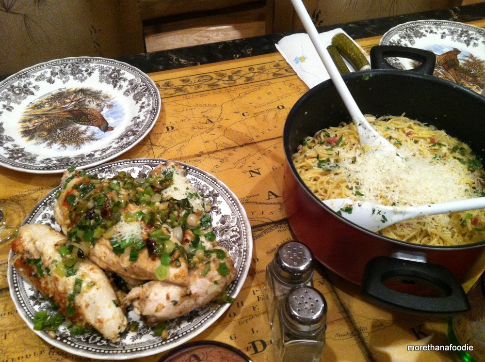 What did you expect? We were roughing it! The recipe is quick, easy, and delicious! Enjoy!