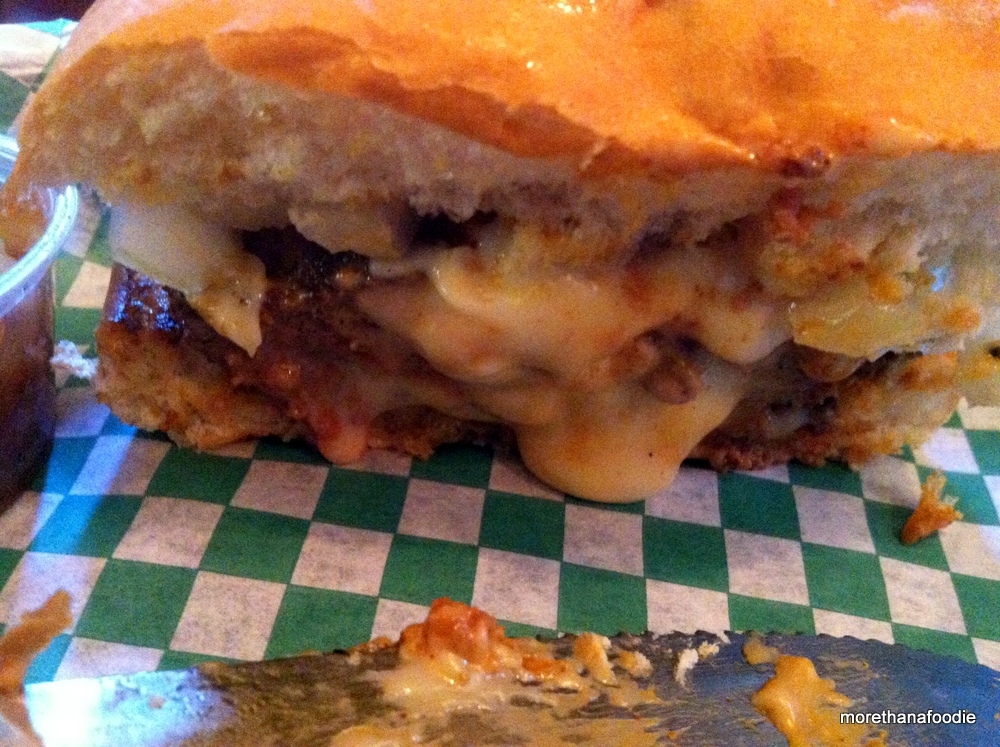 We had been meaning to visit for a long time to try their food and the famous stuffed burgers. There were various reasons we had not stopped but mostly because we have heard it was a small place and always busy. We arrived just after 4pm on a Friday afternoon to find a cozy seat by the kitchen awaiting us. Since their first appearance on Food Network they have had a fire which completely gutted the place, purchased a new restaurant called Shamrocks, and had a second visit from Triple D in 2012.
