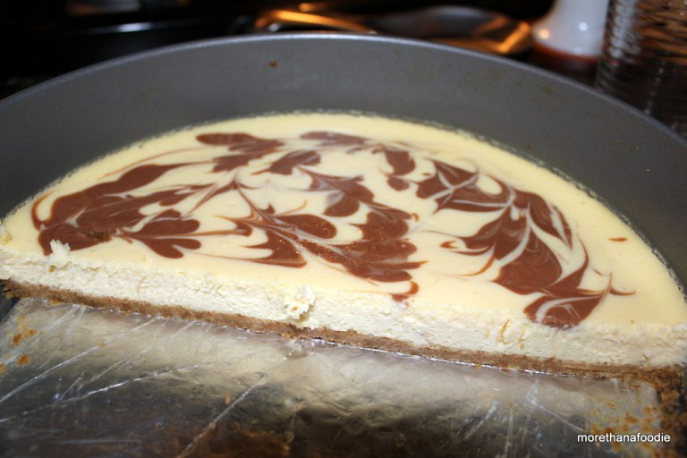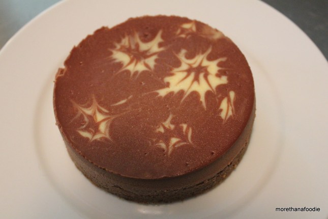 Vanilla cheesecake with original chocolate base swirl.