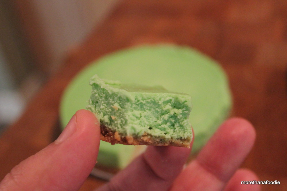Mini green pandan cheesecake.