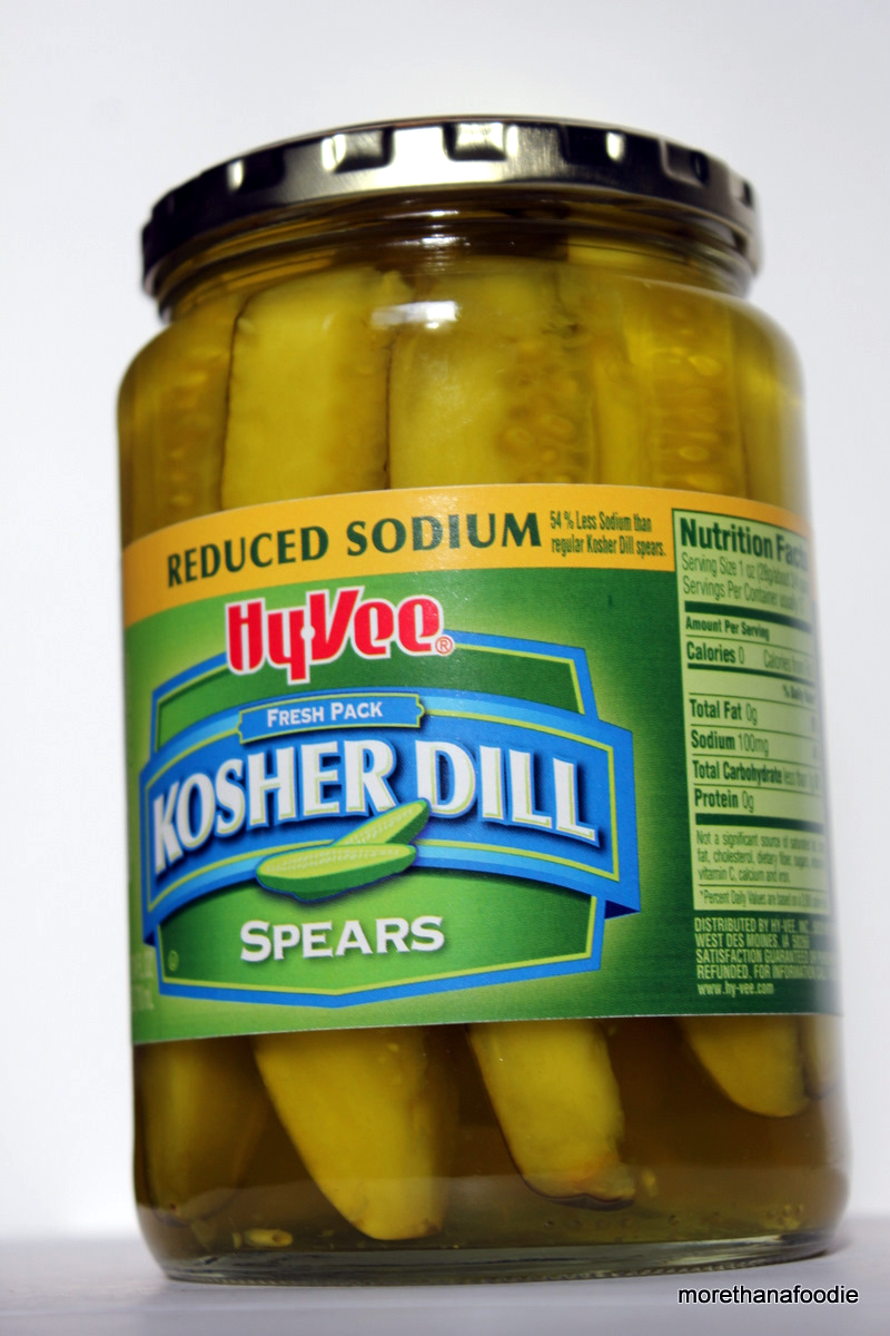 I cannot believe how hard it is to find pickles without a bunch of extra stuff in them like High Fructose Corn Syrup (HCFC) or a ton of salt. I just want basic pickles, but I don’t want to can them myself. These spears from Hy Vee are a good pick.