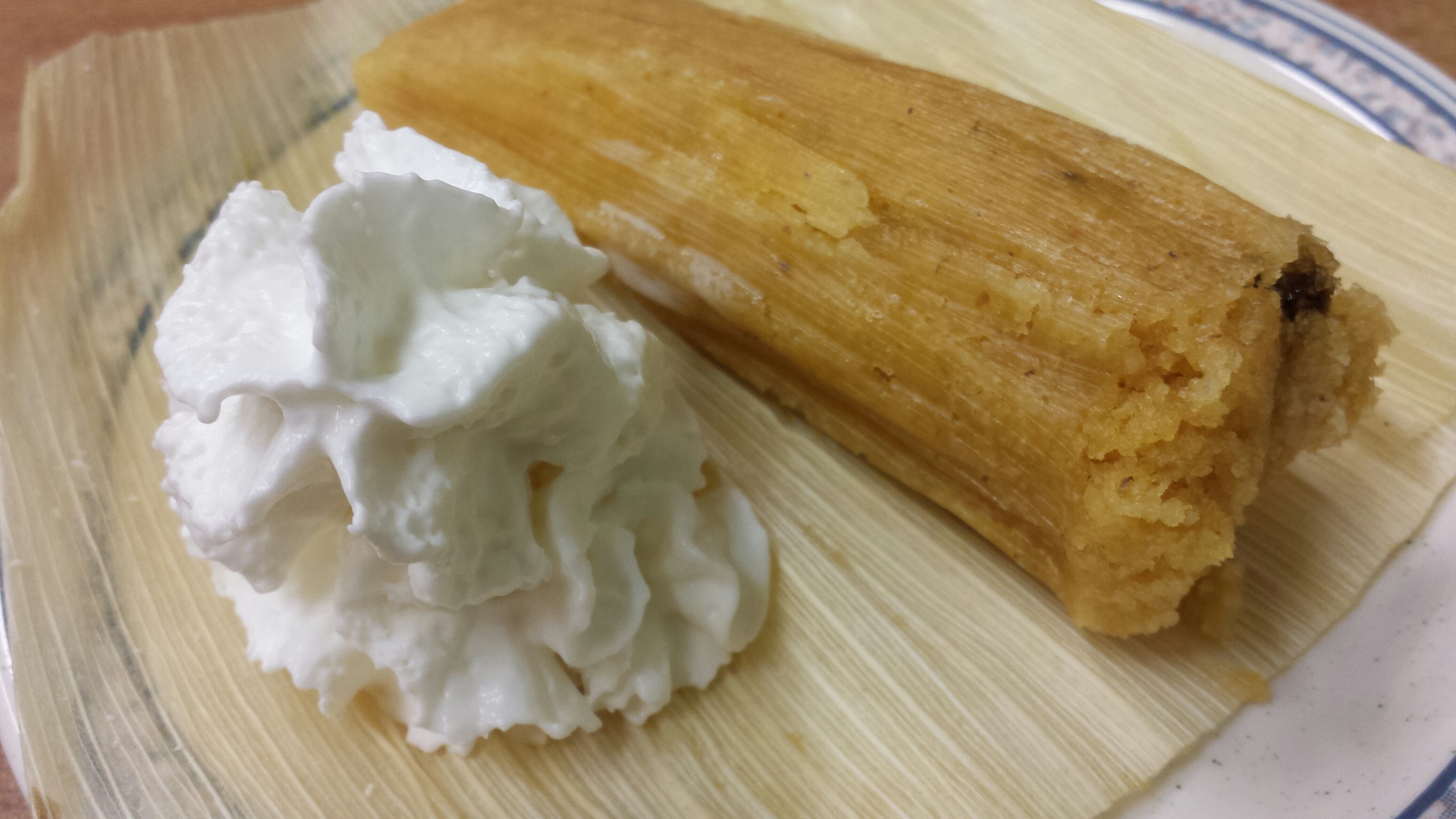 The pumpkin tamale. Totally not on the menu. We convinced our server that we must try one. Lucky enough they had some made for us to taste. It turns out the fruit or pumpkin in this case are mixed into the tamale. Turning your savory into sweet. The tamale had cinnamon and some raisins added for a bit of extra sweetness. All served along with a side of whipped cream.