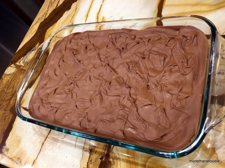 Over the years, I’ve had good and bad scotcharoos. I have seen some where they apply a frosting instead of chocolate or just chocolate. However, in my opinion, milk chocolate and butterscotch are the only way to go!