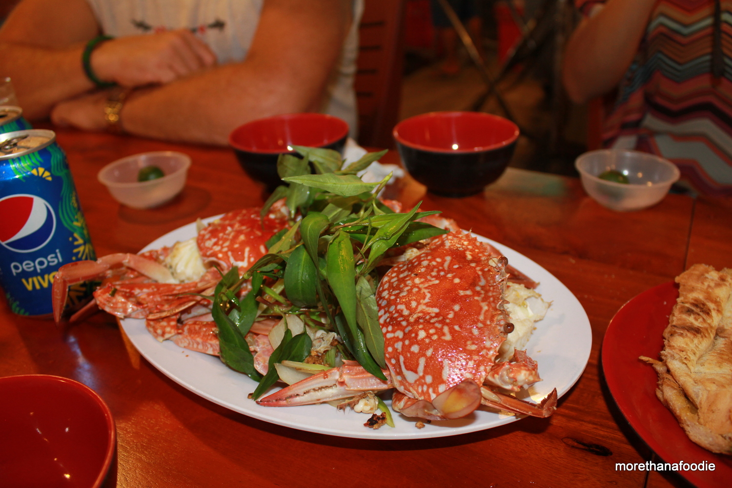 13. Seafood – Fresh, delicious, and you should eat as much as you can. Grilled scallops with scallion and peanut. To die for. Amy and I decided anything with peanuts is pretty much a party in your mouth. Warning: Seafood in Vietnam may be served with all of its original parts. You might be served grilled squid with all of the guts or shrimp with the head and shell. The Vietnamese love the taste and texture. I would say give it a try, but if you find a bit you don’t like take it out and put aside. I would say show your host you enjoy the food. If you don’t care for it, it does make for some extra laughs during the dinner conversation about the American who won’t eat the shell of the shrimp in his Bánh Xèo (Saigon Crepe).