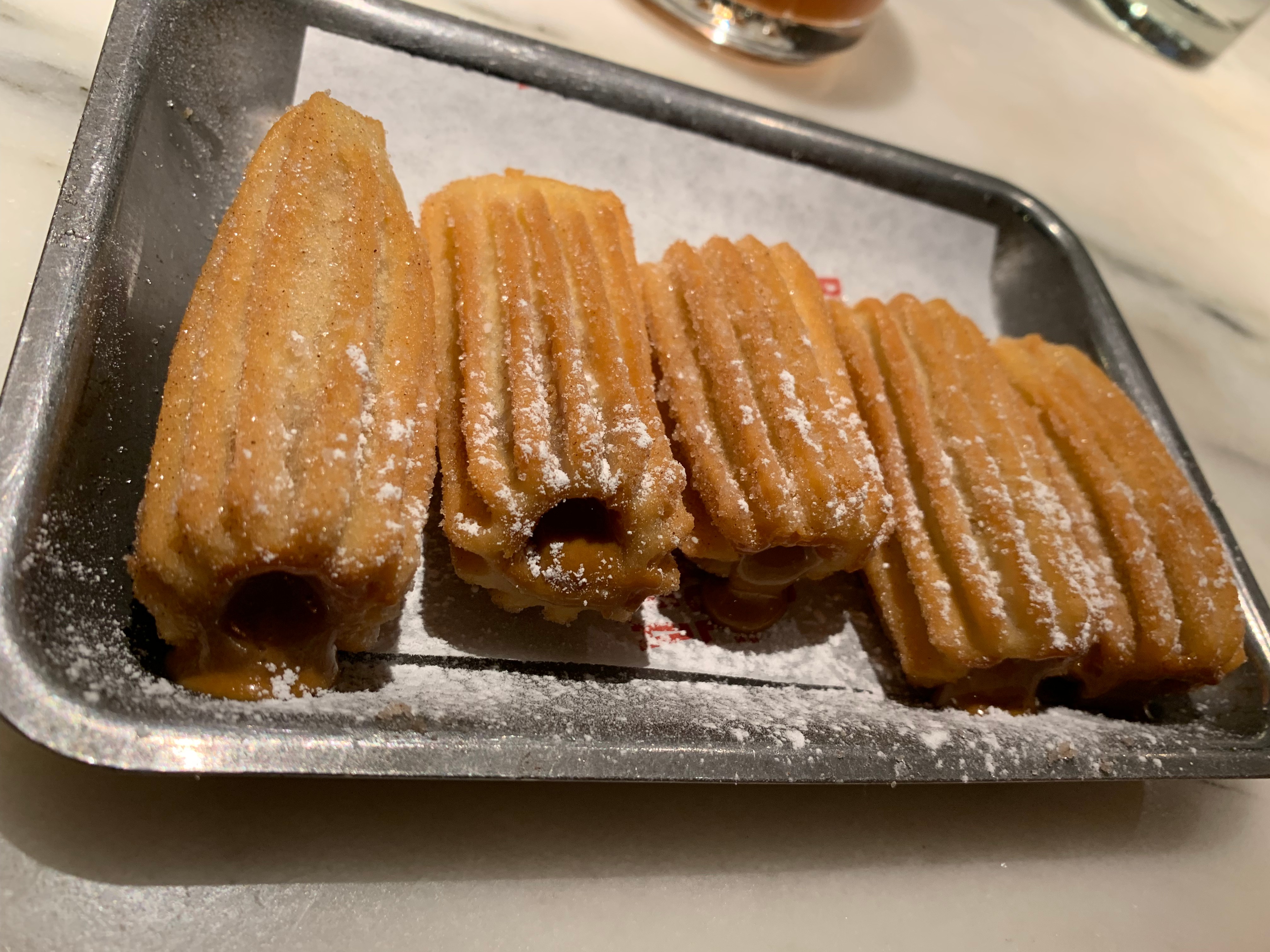 As we wrapped up, how could we resist the churros con chocolate for dessert? Served fresh out of the fryer with melted chocolate inside.