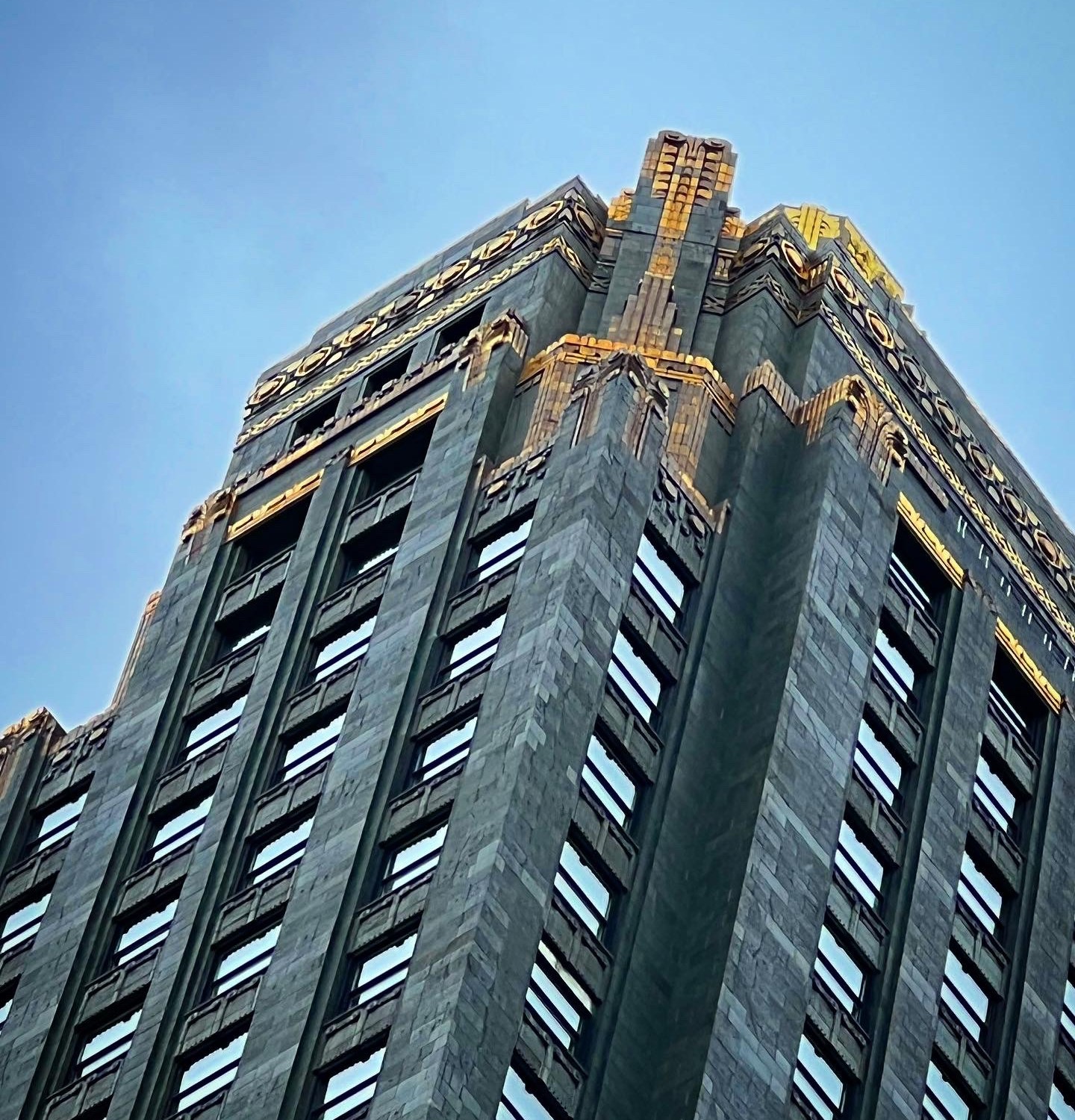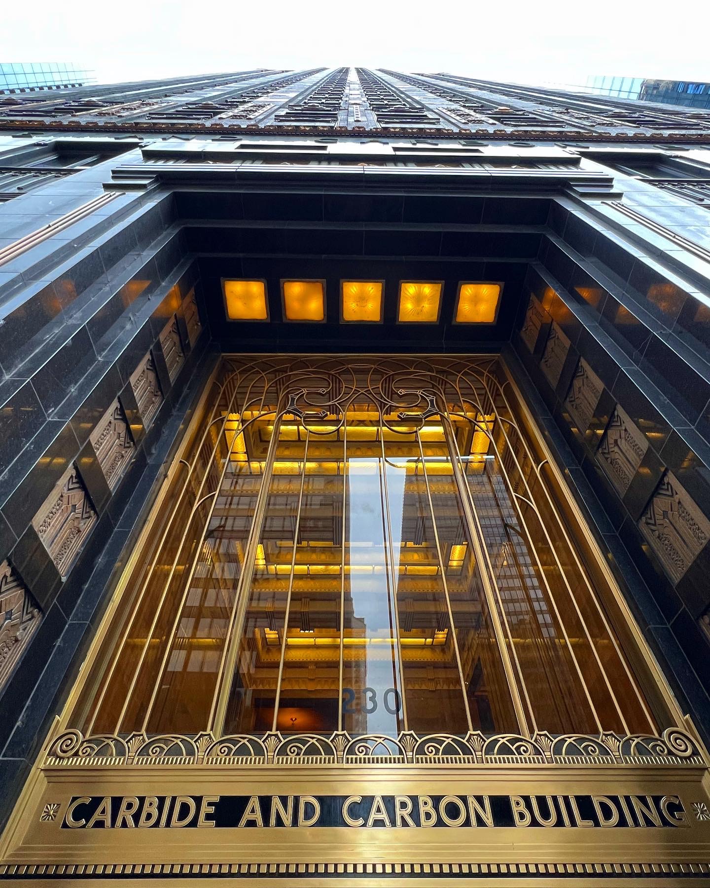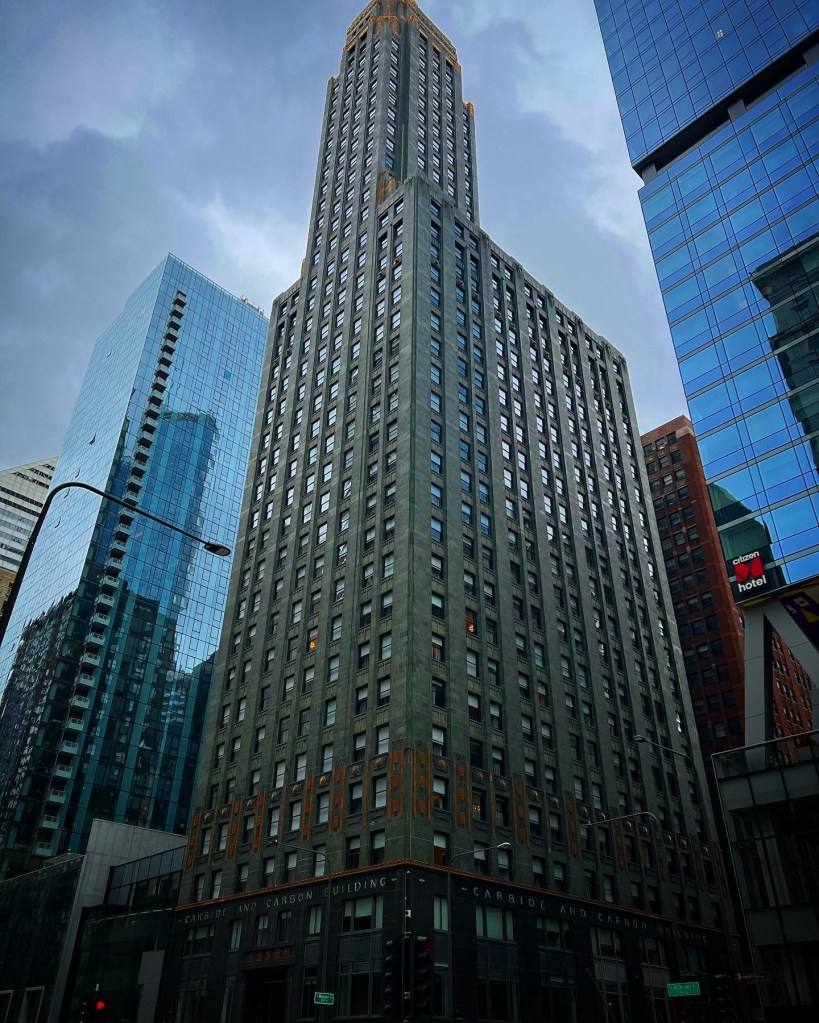 The Carbide and Carbon Building in Chicago is my favorite building. The Carbide & Carbon Building is a an Art Deco high rise built in 1929. The black granite, green terra-cotta, and gold building and modeled after a champagne bottle on Michigan Avenue. The building was designed by the Burnham Brothers. Most famously, Daniel Burnham who designed the Flatiron building in NYC. Also, Daniel was an architect for the “White City,” or the 1893 World’s Columbian Exposition in Chicago.