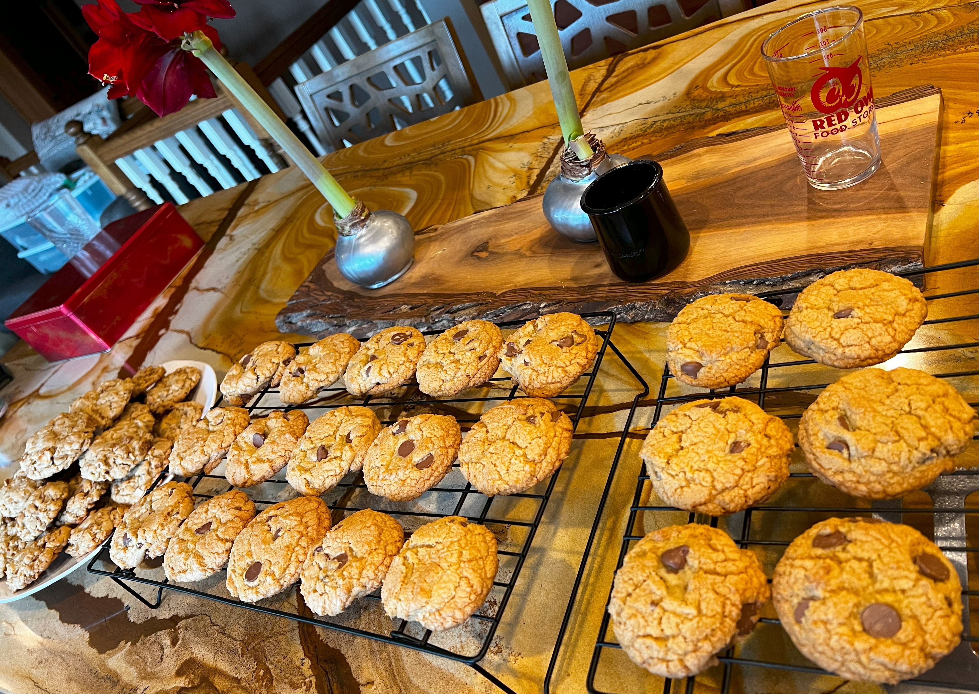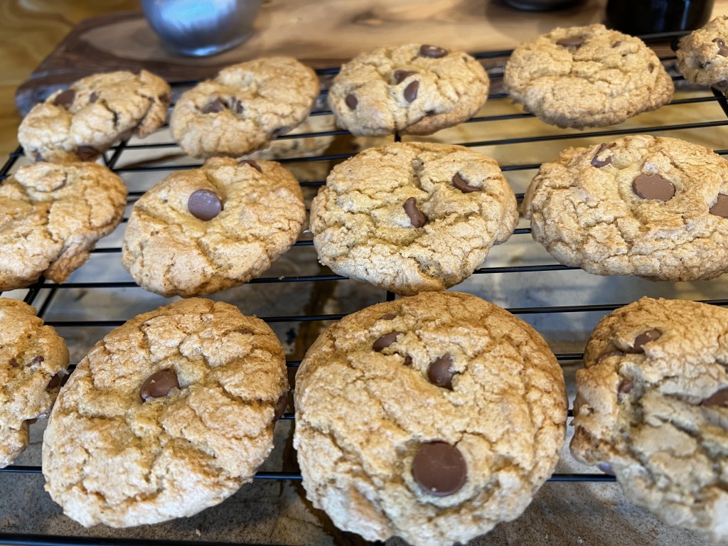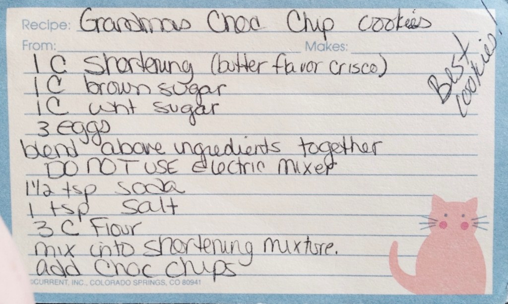My grandma, Virginia. Ginny for short, made these chocolate chip cookies quick and often. Raising 5 kids and 13 grandkids helped to have a recipe like this in your repertoire. Tasting them reminds me of my childhood and getting them out of the wise old brown owl cookie jar. Quick and awesome.