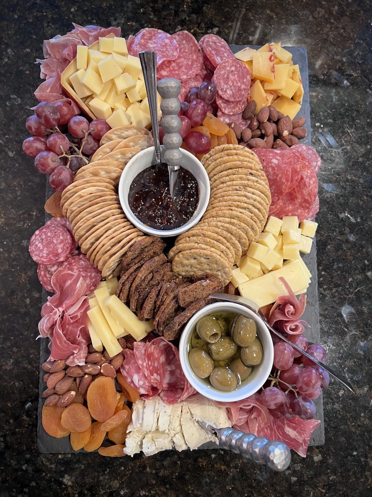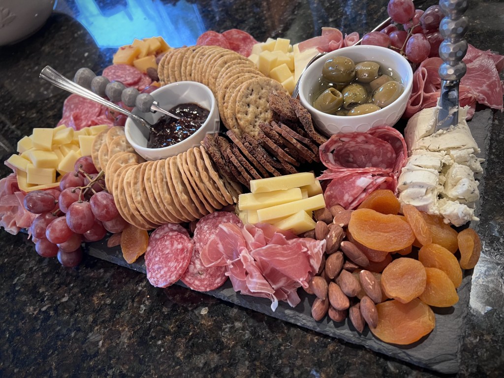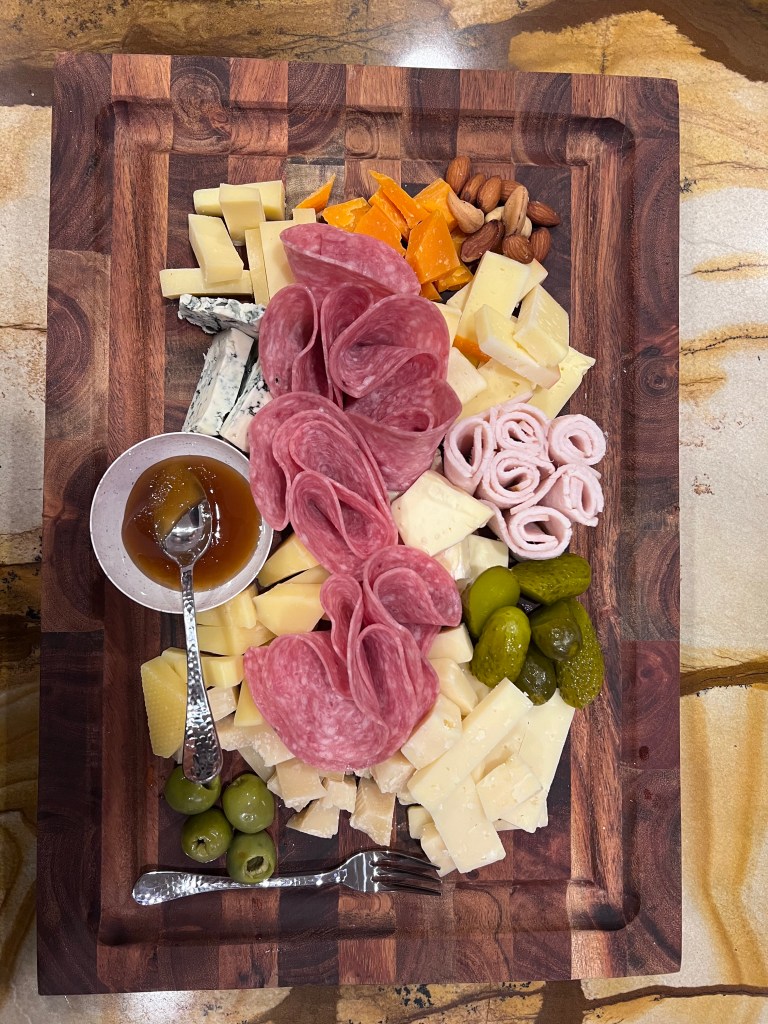 Charcuterie. Apparently I am very good at putting together a spread of accoutrements with meat and cheese. When you receive a new wooden cutting board for the holidays. You have company coming over. It’s the only thing to do.