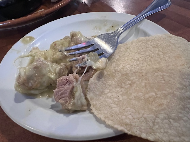 My first stop? Cocina Madrigal, a local gem I found by a review from food vlogger “Strictly Dumpling.” His glowing review led me straight to a meal I’d never forget: the “Hatch Green Chili Pork“, a dish so mouthwatering, I’ve returned four times just to relive it. On the last visit, I was introduced to the divine “chocolate chipotle pie“. A must! Heartbreakingly, the restaurant had just shuttered due to a fire at its brick and mortar location in 2024.